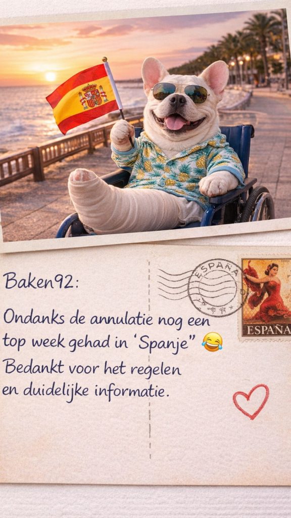 Als bedankje voor de goede zorgen stuurt Skihuahua een kaartje naar Baken92. ✉️ Dankzij zijn annulatieverzekering werden zijn gemaakte kosten terugvergoed.